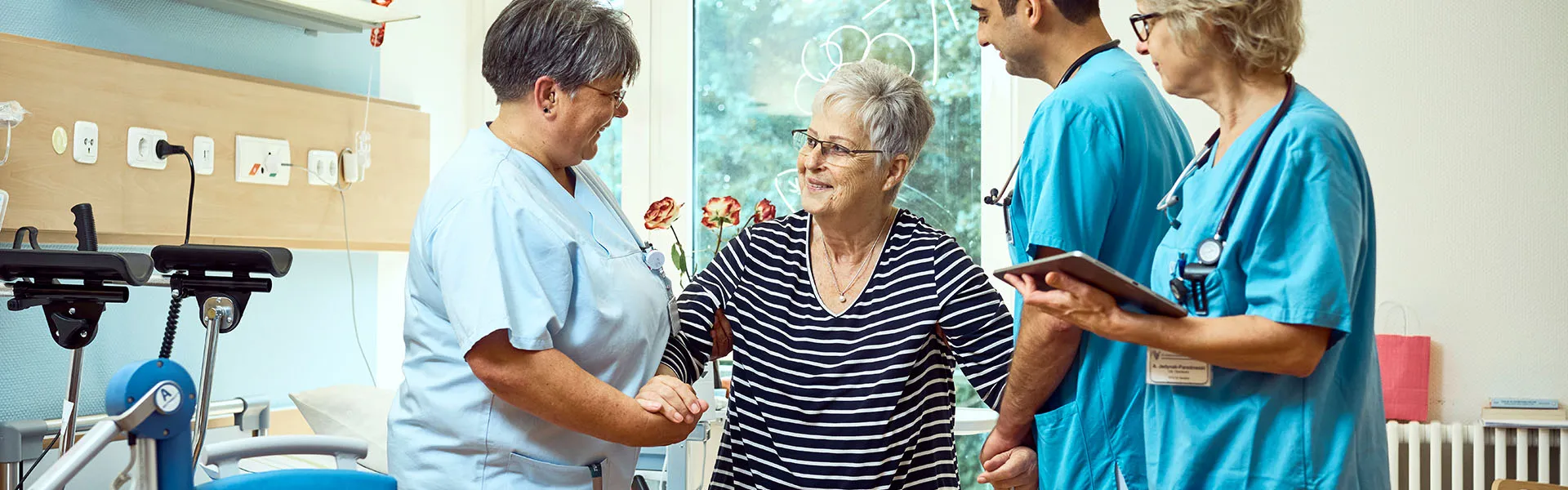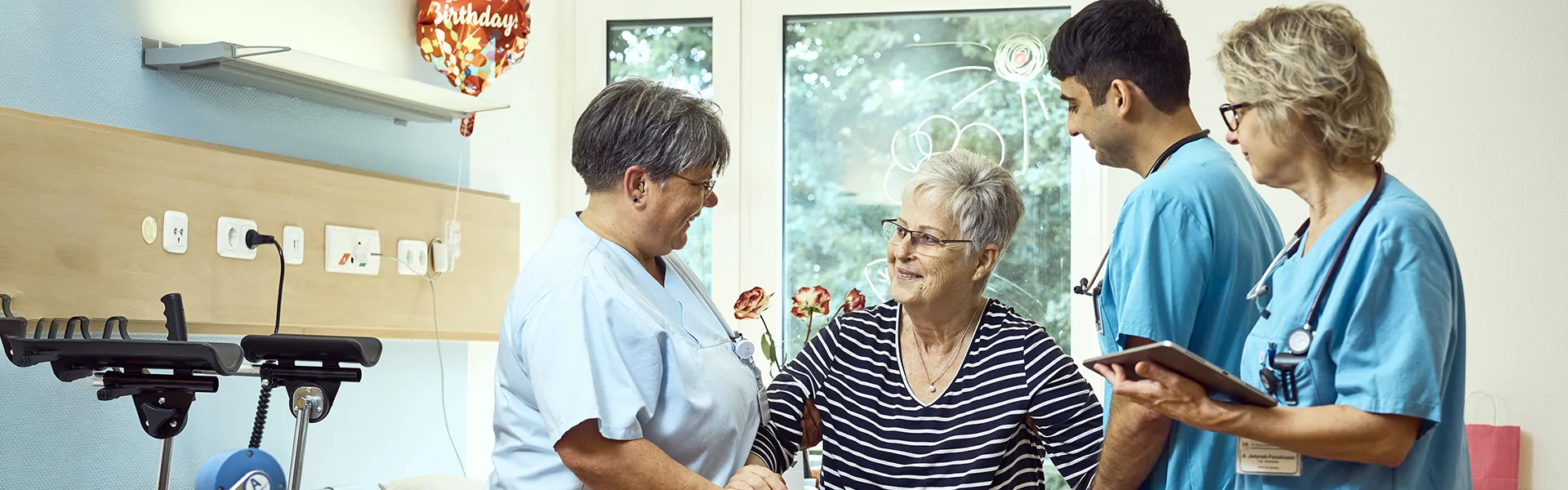 Um eine reibungslose Koordination und Informationsweitergabe zu gewährleisten, sprechen wir als Case-Managerinnen und -Manager direkt mit Patientinnen und Patienten, deren Angehörigen sowie Ärztinnen und Ärzten und prüfen gemeinsam, inwieweit die geriatrische Komplexbehandlung in der Akutgeriatrie in Salzkotten als sinnvoll erachtet wird.