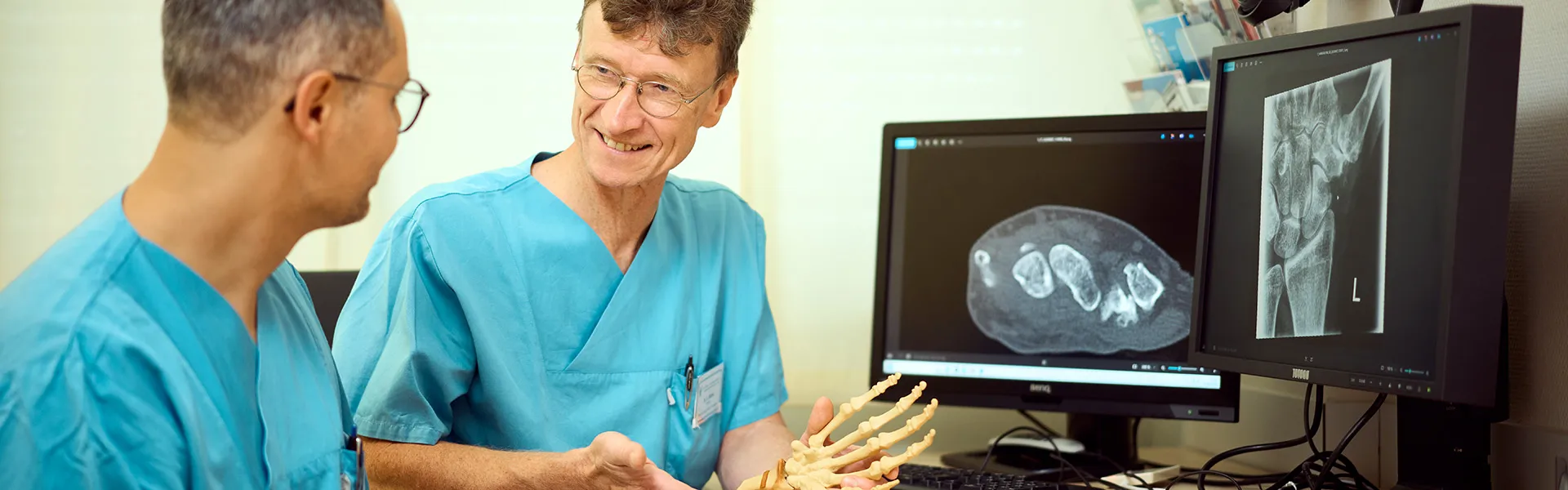 Um in unserer Handsprechstunde behandelt werden zu können, benötigen Sie zunächst eine Überweisung von einem Facharzt (Orthopäden, Chirurgen oder Neurologen). Bei Arbeitsunfällen und deren Folgen, oder falls Sie privat versichert sind, benötigen Sie keine Überweisung. Eine telefonische Anmeldung unter +49 5251 86 1390 zu unserer Handsprechstunde ist erforderlich.