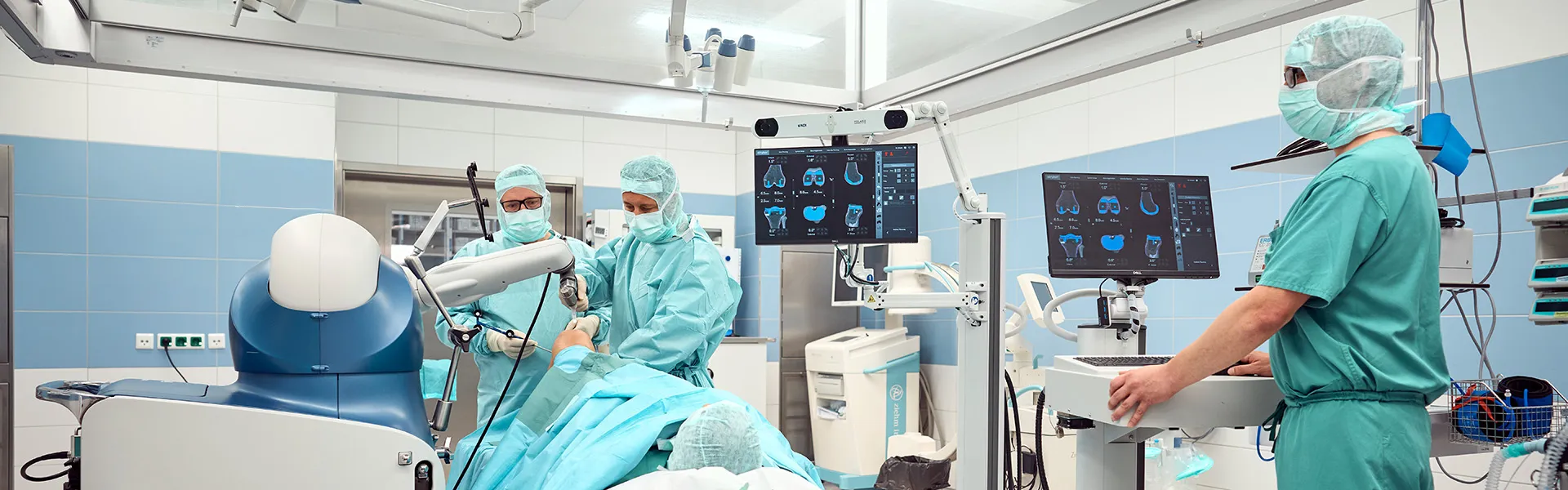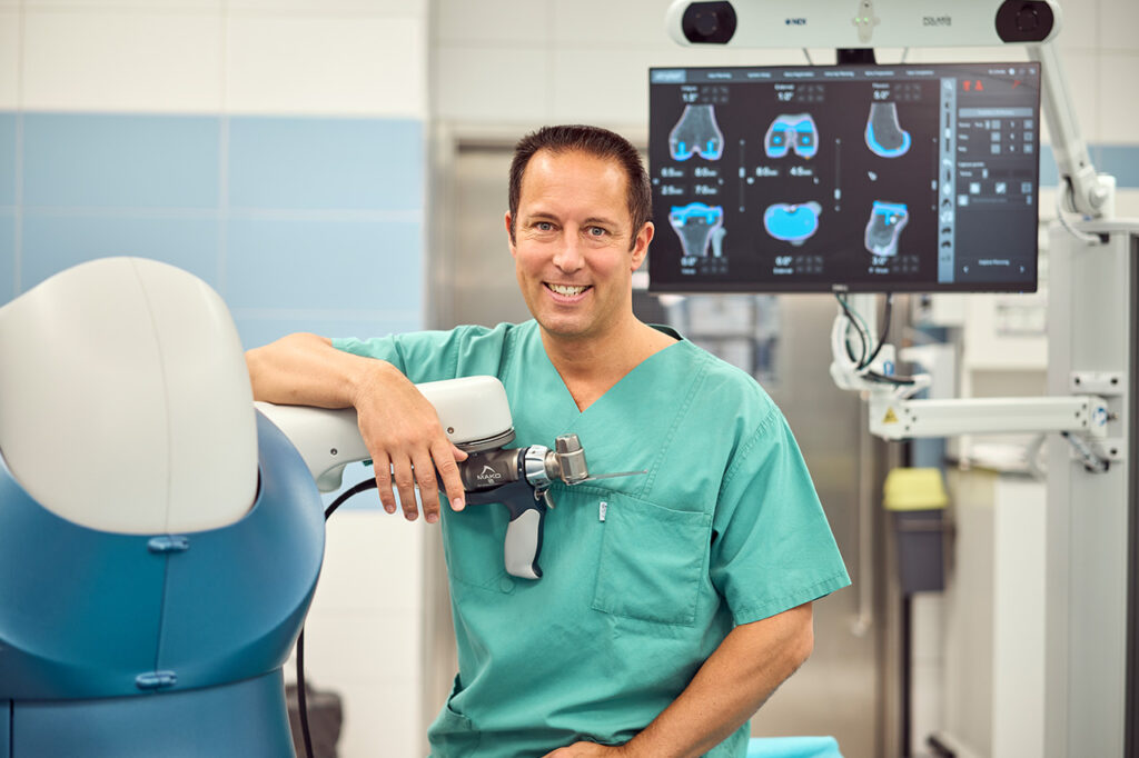 Für ein schmerzfreies Leben mit einem künstlichen Gelenk ist der optimale Sitz der Prothese das A und O. Für die Chirurgen bedeutet das während der Operation Millimeterarbeit. Genau hierbei unterstützt die Mako-Technologie. Mithilfe des Roboters können die Operateure im Vorfeld des Eingriffs dreidimensionale Bilder erstellen und die nötigen Schnitte vordefinieren – jede Prothese ist so individuell an die Anatomie des Patienten angepasst. Der Roboterarm stellt daher ein Höchstmaß an Präzision sicher.
