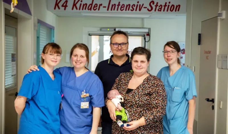 Fast 160 Tage Aufenthalt auf der Kinderintensivstation – Sam hatte einen herausfordernden Start in sein Leben. „Sam ist ein echter Kämpfer und hat sich bei uns im Perinatalzentrum sehr gut entwickelt. Er war nur einen Tag invasiv beatmet, danach war immer eine nasale Atemunterstützung ausreichend“, berichtet PD Dr. Friedrich Ebinger, Chefarzt der Klinik für Kinder- und Jugendmedizin.