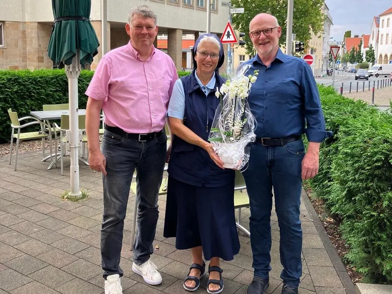 Dank und Abschied: Erhard Günter (rechts) mit Sr. Bernadette M. Putz (Geschäftsführung) und Andreas Vogt (MAV). Foto: St. Vincenz-Kliniken