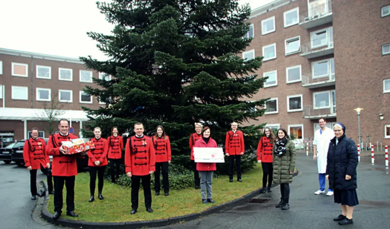 Freuten sich über das tolle Engagement des Musikvereins: Schwester Bernadette M. Putz, Geschäftsführerin der St. Vincenz-Kliniken, Marita Neumann (6.v.l.) und der Vorstand des Kolping Musikverein Bad Lippspringe.