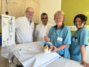 Das Bild zeigt (v.l.n.r.): PD Dr. Benjamin Völlger, Ali Mustafa Elheggiagi, Dr. Beatrice Jager und Dr. med. Ta-Chih Tan. Foto: St. Vincenz-Kliniken