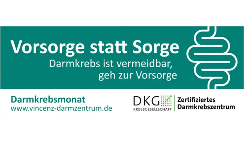 Ausgerufen von der Felix Burda Stiftung, steht der Monat März im Zeichen der Darmkrebsvorsorge. Darmkrebs ist eine der häufigsten Krebsarten bei Frauen und Männern − jährlich erkranken rund 63.000 Menschen daran in Deutschland. Die Leiter des Vincenz-Darmzentrums, Prof. Dr. Jobst Greeve und PD Dr. Hubert Scheuerlein, appellieren daher: „Darmkrebs ist vermeidbar. Nutzen Sie die kostenlosen Vorsorgemöglichkeiten!“