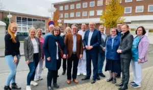 Das Krankenhaus soll damit die Kapazitäten in den Geburtshilfen der St. Vincenz-Kliniken aufstocken. Das Schließen der Geburtshilfeabteilung am St. Johannisstift zum 1.3.2022 macht dies zwingend erforderlich. Doch um die St. Louise Frauen- und Kinderklinik wirklich zukunftsfähig zu machen, reicht diese Summe nicht aus. Nun waren die Landtagsabgeordneten Norika Creuzmann (Bündnis 90/Die Grünen), Bernhard Hoppe-Biermeyer (CDU) und Staatssekretär Daniel Sieveke (CDU) erneut in der Klinik zu Gast, um weitere Perspektiven zu besprechen.