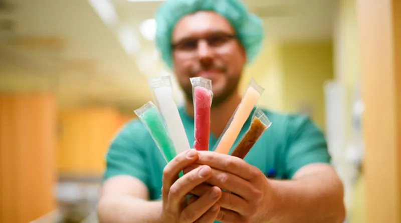 Kirsche, Waldmeister oder Zitrone? Diese Frage stellt nun das Team der Anästhesie des St. Vincenz-Krankenhauses seine Patienten nach einer Operation im Aufwachraum. Was ungewöhnlich klingt hat einen medizinischen Hintergrund: Das Eis steigert nachweislich das Wohlbefinden der Patienten und wirkt schmerzlindernd.