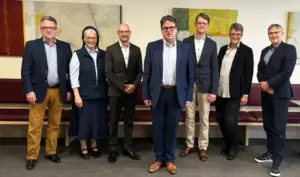 Stabübergabe im St. Vincenz: Dr. Josef Düllings, Sr. Bernadette M. Putz, PD Dr. Alexander Weidemann, PD Dr. Hubert Scheuerlein, Dr. Martin Baur, Marion Schwerthelm, Jürgen Thau