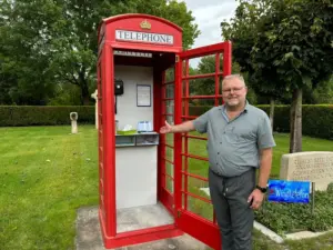 Leuchtend rot steht sie auf dem Gräberfeld – und irritiert. Was macht eine britische Telefonzelle auf dem Friedhof Auf dem Dören? Seelsorger Markus Kamin kennt die Antwort. Das auffällige Bauwerk ist ein Windtelefon, ein besonderer Ort für Trauernde.