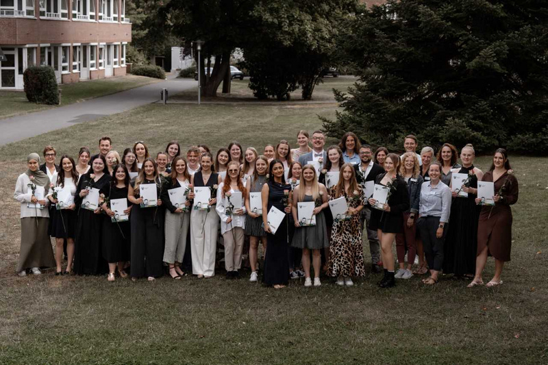 Überall waren strahlende Gesichter zu sehen, als die neuen Fachkräfte ihre Zeugnisse bekamen.  22 Pflegefachpersonen und 11 Gesundheits- und Kinderkrankenpflegerinnen freuten sich über die Glückwünsche zur bestandenen Ausbildung. „Jede und jeder Einzelne von Ihnen spielt eine zentrale Rolle, wenn es um Empathie und Vertrauen geht. Entwickeln Sie Ihre Fachexpertise weiter, aber vergessen Sie nie die Menschlichkeit in ihrem Handeln“ appellierte Ulrike Landschütz.